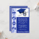 5", por 7", tema "Convite para graduação, Boné e Diploma, com trabalho de arte de "Ano", em azul real e branco, com fundo azul real. O verso do convite inclui o nome do formando, Pode ser personalizado com as suas próprias imagens, trabalho de arte, etc.