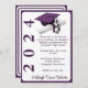 5" por 7" Diploma de Licenciatura, tema de Boné e Diploma, com "Ano de Classe" em Roxo. O verso do convite inclui o nome do formando, Pode ser personalizado com as suas próprias imagens, trabalho de arte, etc.