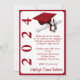 5" por 7", tema "Convite para graduação, Boné e Diploma, com "Ano da Classe" em Vermelho e Branco. O verso do convite inclui o nome do formando, Pode ser personalizado com as suas próprias imagens, trabalho de arte, etc.