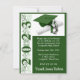 Convite para graduação, tema Boné e Diploma, com trabalho de arte de "Ano", em Verde e Branco, com fundo Verde. O verso do convite inclui o nome do formando, Pode ser personalizado com as suas próprias imagens, trabalho de arte, etc. Mensagem MineByDesign e podemos ajudar a criar qualquer design que você imagina!