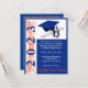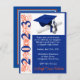 Tema de Convite para Graduação, Boné e Diploma, com trabalho de arte de "Ano", em Laranja e Azul, em fundo azul. O verso do convite inclui o nome do formando, Pode ser personalizado com as suas próprias imagens, trabalho de arte, etc.