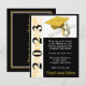 Tema de Convite à Graduação, Boné e Diploma, com trabalho de arte de "Ano", a Preto e Dourado sobre fundo Negro. O verso do convite inclui o nome do formando, Pode ser personalizado com as suas próprias imagens, trabalho de arte, etc.