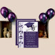Tema "Boné de Licenciado", "trabalho de arte" e "Diploma", com "Ano", em Púrpura e Branco, com formação em Púrpura. O verso do convite inclui o nome do formando, Pode ser personalizado com as suas próprias imagens, trabalho de arte, etc.
