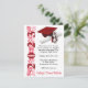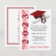 Tema de Convite à Graduação, Boné e Diploma, com trabalho de arte de "Ano", em Vermelho e Branco. O verso do convite inclui o nome do formando, Pode ser personalizado com as suas próprias imagens, trabalho de arte, etc.