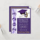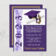 Tema "Convite à graduação, Boné e Diploma", com trabalho de arte de "Ano", em Roxo e Dourado, com fundo Roxo. O verso do convite inclui o nome do formando, Pode ser personalizado com as suas próprias imagens, trabalho de arte, etc.