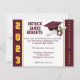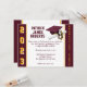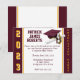 Convite para graduação, tema Boné e Diploma, com ano de aula e "festa de formatura" em Maroon e Dourado. O texto do ano e do nome está na varsity font com sombreamento 3d do ano. O verso do convite inclui o nome do formando. O cartão pode ser personalizado com suas próprias imagens, trabalho de arte, etc.