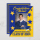 Convite para graduação com design de cor na diagonal da escola, com foto de formando, boné e trabalho de arte de diploma, e estrelas na frente. Inverter recursos convite à festa de formatura. Você pode personalizar o convite no Zazzle ou na mensagem MineByDesign para obter assistência ou pedidos personalizados.