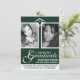 Carregue suas próprias duas fotos favoritas de seu formando e posicione para ajustado as caixas brancas simples em um rico e esmeraldo gemstone inspirado no fundo. É uma sombra verde de floresta muito real. Então personalize com sua informação de graduação. Mostrada como formatura de segundo grau, mas pode ser facilmente modificada para se adequar ao ensino secundário poste. Formato de orientação vertical com as fotos no topo e as informações pertinentes na parte inferior. Um boné branco de formando de estrutura de tópicos, quadros em torno da foto e a fonte de script de escrita manual fluente adicionam toques agradáveis enquanto os nomes e as informações da parte estão em texto de letra de bloqueio claro e fácil de ler.