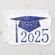 Designs florais sobre boné de formatura, fundo e ano. Boné de formatura azul sobre fundo branco. O fundo tem um fundo azul com letras brancas para os convites de festa de formatura.