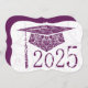 Designs florais sobre boné de formatura, fundo e ano. Roxo e roxo claro sobre fundo branco. O fundo tem um fundo roxo com letras brancas para os convites para festas de formatura.