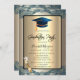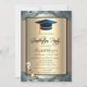 Boné de formatura azul, vidro de champanhe sobre fundo de champanhe. Este convite é facilmente personalizado para o seu evento simplesmente adicionando os seus detalhes.