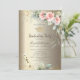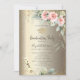 Dourado boné de formatura brilhante, vidro de champanhe, flores e confete sobre fundo branco. Este convite é facilmente personalizado para o seu evento simplesmente adicionando os seus detalhes.