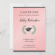 Boné preto moderno, coroa de louros de turquesa e diploma sobre fundo rosa