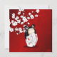Uma boneca de kokeshi em um Kimono vermelho branco sob uma árvore branca de cherryblossom. Com um fundo vermelho brilhante. Com um texto personalizado em uma fonte elegante para as festas de aniversário femininas.