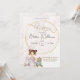 Um design cor-de-rosa pincelado bonito e minimalista com uma boneca bebê, coelho e ursinho de pelúcia, esta carta inclui opções de personalização.