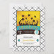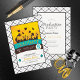 Esta design de graduação colorida e divertida captura o humor comemorativo com sua silhueta de formandos jogando seus bonés no ar e é um esquema de cores alegre. Uma borda de cheques em preto e branco e acentos de aqua e ouro são o pano de fundo para seus detalhes de graduação. Adicione as informações do evento de celebração ao contrário usando o modelo fornecido.