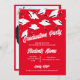 Se as cores da sua escola são vermelhas e brancas, este convite para a formatura está cantando sua música escolar. Um convite de fotos personalizável, branco e vermelho, para uma festa de formatura para ele ou para ela. Personalize a frente desses convites de graduação com o nome do formando e as informações de sua parte. Personalize o verso do convite para a graduação com o ano de graduação e a escola. bonés de formatura brancos e placas de mortalha jogados no ar em um fundo vermelho. Convite de festa de formatura divertida para segundos graus ou formandos.