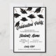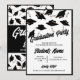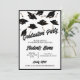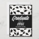 Um convite personalizável preto e branco para uma festa de formatura para ele ou para ela. Personalize a frente desses convites de graduação com o nome do formando e as informações de sua parte. Personalizar o verso do convite à graduação com o ano de graduação e a escola. Bonés de formatura pretos e placas de mortalha jogados no ar sobre fundo branco. Convite de festa de formatura divertida para segundos graus ou formandos.