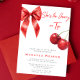 Aprecie a celebração com este Chá de panela "Ela é a Cereja no Topo"! Apresentando um tema lúdico de cereja, este convite é perfeito para um chá de panela divertido e na moda. Personalize com o nome, a data e os detalhes do evento da noiva para torná-lo exclusivamente seu. Recursos: design de cereja adorável com tipografia elegante Texto totalmente personalizável para todos os detalhes do evento Perfeito para chás de panela, festas de noivado ou eventos relacionados ao casamento Disponível em uma variedade de tamanhos e tipos de papel Torne seu chá de panela muito doce com este charmoso convite para a cereja!