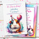 Um adorável convites de festas de aniversários de menina rosa e púrpura. Porquinhos-da-índia, cor-de-rosa, púrpura, lacre e laranja, e muitas cores divertidas segurando cupcakes e balões. Se sua filha gosta de cobaias, então são perfeitos para ela! Basta adicionar seu convite de aniversário na área de personalização.