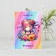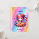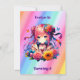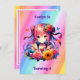 Convites de festas de aniversários de moça. Uma festa de aniversário de anime do arco-íris com tema, convidada com um gatinho anime fofo, arco-íris, flores e borboletas.