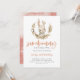 Cartão de convite de aniversário para moça de coelho bonito com aquarela ilustrando um coelho com verde e coroa floral rosa. O texto diz "alguém está fazendo X".