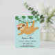 Pequena preguiça-de-selva bonita na vinha com um amigo da borboleta. Fundo texturizado com cor d'água riscada. Todo o texto é ajustável e fácil de usar. Trabalho de arte de Valarie Wade.
