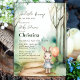 Celebre a chegada da sua menina com este convite de chá de fraldas encantador e único. Apresentando uma ilustração encantadora da aquarela de uma coelhinha colocada contra um pano de fundo de verde e floresta, o convite expele um encanto natural e rústico. O suave e suave design de aquarela dá um tom calmo, fazer-o a escolha perfeita para uma celebração de chá de fraldas alegre.
