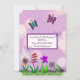 A Mão Bonita desenhou uma menina branca, roxa, borboletas, flores e arcos, convites para bebê.