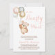 Que bom que podemos esperar o urso de pelúcia e o convite para chás de fraldas de meninas Balões. Personalize isso com seu próprio nome e detalhes para torná-lo seu.