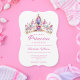 Convites Bonita Princesa Tiara Dourada Rosa Bebê Glitter