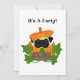 Põe a tua espada com este adorável Halloween ou qualquer convite de festas de Pug da festa de outono! Pumpkin numa vinha com um dentro de cão Pug fofo. Um cartaz de madeira na mancha de Pumpkin diz "Pugkin Patch". Igualando o Pug em uma festa de abóbora também!