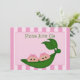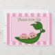 Convite para Chás de fraldas de Ervilha Verde. Os gêmeos estão sentados em uma cápsula de ervilha e estão vestindo arcos cor-de-rosa. O convite de chá de fraldas tem um fundo de faixa rosa. Personalize com os detalhes do seu partido.