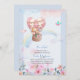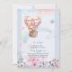 Balão de ar quente e selva bonito com aquarela e animais aparecem neste convite para chás de fraldas modernos para raparigas.