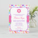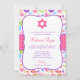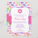 Um doce divertido recebeu o convite do Bat Mitzvah. Design apresenta um padrão doce em roxo, rosa, verde, azul e laranja. Gráficos por www.jwillustrations.com
