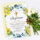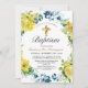 Celebre o batismo do seu bebê com seus entes queridos quando você envia estes belos convites florais amarelos para batismo. Estes batismos florais de boho convidam um bebê ou uma menina a apresentar flores amarelas bonito com sotaques azuis escuros. O verso do convite ao batismo tem um fundo amarelo macio com bolinhas brancas. Personalize com todas as suas informações para um toque super personalizado.