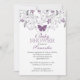 Comece o seu chá de fraldas da menina na moda, que está na moda, com a nossa espantosa borboleta roxa com folhas delicadas e flores roxas bonito sobre um fundo branco com um dorso roxo sólido. Nosso convite de chá de fraldas moderno, bonito e moderno é perfeito para um chá de fraldas de meninas para um chá ou chá de verão. Visite o nosso compro para fazer a correspondência entre selos postais, autocolantes e notas de agradecimento. Também disponível em cores adicionais.