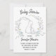 Este design de coelhinho meigo é perfeito para o seu chá de fraldas, quer a mãe esteja esperando um menino, uma garota ou uma surpresa! A design apresenta uma mama de coelho desenhada pela mão com seu bebê cercado por uma coroa de galhos, flores e corações. Uma fonte escrita à mão foi usada para as palavras Chá de fraldas no topo do design, e o nome da futura mãe por baixo. O inverso do convite é uma dispersão de estrelas coloridas desenhadas à mão.