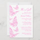 Um belo convite para chás de fraldas. Apresentando borboletas em cor-de-rosa macio em um fundo branco. Personalize facilmente o seu evento.