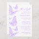 Um belo convite para chás de fraldas. Apresentando borboletas em roxo macio em um fundo branco. Personalize facilmente o seu evento.