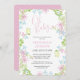 Este bonito convite para chás de fraldas florais rosa, azul e verde para uma garota é tão doce e charmoso. Esta design feminina e feminina apresenta flores rosas e azuis com verde botânico. A parte de trás do convite para chás de fraldas é rosa com bolinhas brancas. Misturar e combinar com outros produtos nesta coleção de convites para chás de fraldas.