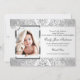 Convites Bonito Damask & Cross Silver Photo Baptism Convide