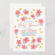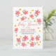 Celebre a vinda de sua menina com o nosso convite personalizado com um gráfico ilustrado vermelho-rosa e amarelo de um simples padrão floral inspirado pelo povo em um novo fundo branco-primavera. Este modelo design está disponível online para sua personalização simples.