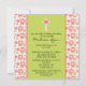 Comece o seu evento com o nosso batismo de flores cor-de-rosa/convite batizante. O convite apresenta um belo impressão floral cor-de-rosa e um fundo verde com uma cruz e um coração cor-de-rosa. Fácil de personalizar, basta adicionar suas informações de evento e você está pronto para ir.