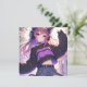Convites de festas de aniversários da garota personalizada. Menina de anime bonita vestindo fones de ouvido com orelhas de gato e um suéter roxo e preto. Festa de aniversário bonita para garotas de jogos ou amantes de música ou aqueles que amam o tema da pelagem.