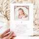 Estes convites simples e adoráveis de Batismo ou Christening mostram a foto do seu bebê cercada por uma bonito e falsa borda de rosa de ouro em um fundo branco. Os convites também apresentam uma cruz correspondente e um layout elegante e mínimo.