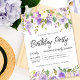 Honra uma mulher especial com este convite de festas elegante e feminina. Os detalhes da comemoração de aniversário estão cercados por cima e por baixo, bordas florais roxas. Os elementos florais estão aninhados em folhas verdes profundas. Enquanto é um design tradicional, a folhagem botânica aberta e arejada e o texto lhe dão uma vibração contemporânea. Este item faz parte da coleção de aniversário de 30 anos botulínicos de roxo russo.