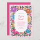 Este belo convite de Brunch para Páscoa apresenta um design floral desenhado manualmente em magenta / fuchsia rosa, laranja, ouro amarelo, roxo, azul e verde sobre um fundo de cor personalizado (mostrado na rosa claro). Um quadro em forma oval permite que o texto se destaque em rosa correspondente. *Trabalho de arte criado exclusivamente por Impressões Orabella