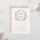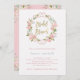 Este belo convite para brunch bridal apresenta uma coroa de adoráveis rosas cor-de-água rosa com folhas verdes e sotaques de rosa dourado falsos, e um roteiro de ouro falso no centro. A parte traseira da placa é cor-de-rosa suave com buquês florais correspondentes nos cantos.