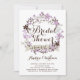 Belo chá de panela floral. Apresenta uma coroa floral de flores roxas e cinzas de primavera com caligrafia balnear. Este chá de panela floral será perfeito para chás de panela de verão e primavera. Personalize adicionando os detalhes do evento.